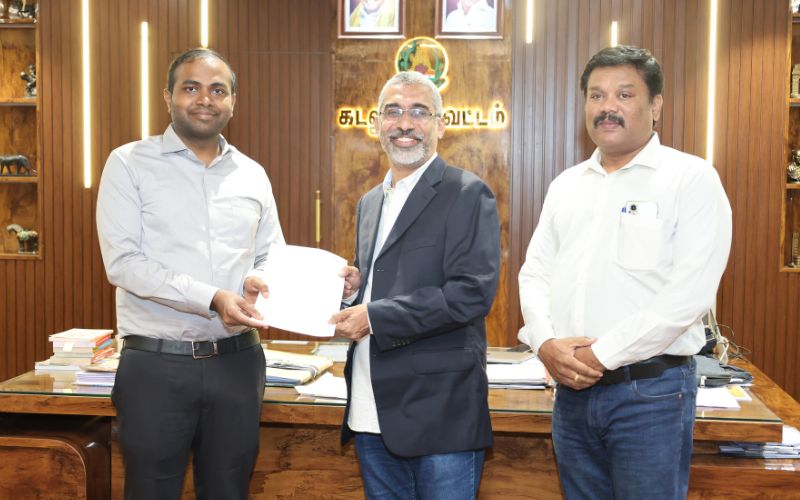 In a meeting held at the District Collector’s Office on 4th February 2026, Covestro (India) Cuddalore Site Head, Jeganathan Kanmani, presented a demand draft to the district collector covering two significant projects: ₹23.24 Lakh for the desilting of irrigation tanks across three panchayats, and ₹20 Lakh for obtaining Light Commercial Vehicles (LCV) for solid waste management in Cuddalore District.