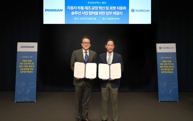 Doosan Robotics announced on 9th March 2026 that it has signed a Memorandum of Understanding (MOU) with Kwangjin Group at Bundang Doosan Tower in Seongnam, Korea. Through this agreement, the two companies will collaborate on manufacturing process automation and strengthen quality competitiveness by deploying Doosan robot solutions.