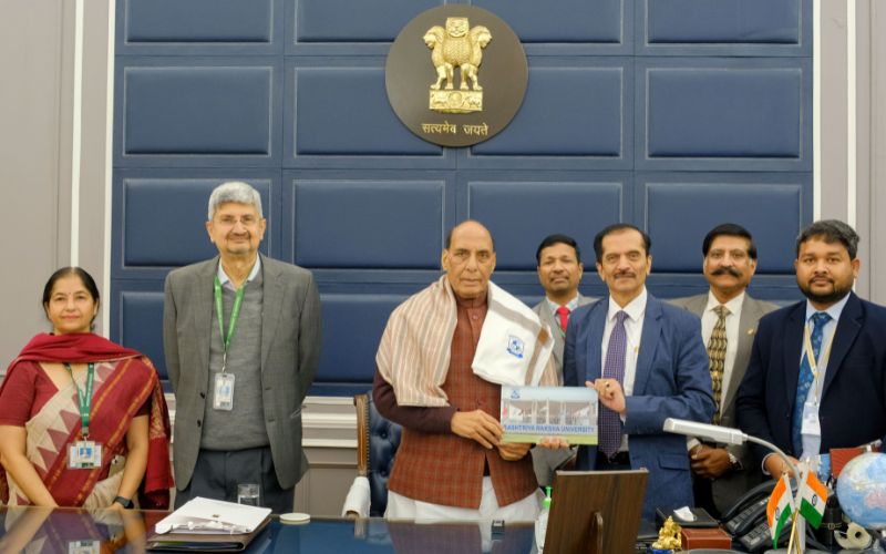 Defence Research & Development Organisation (DRDO) and Rashtriya Raksha University (RRU) have signed a Memorandum of Understanding (MoU) to foster collaboration in the areas of research, education, training and technology support for defence & internal security. The MoU was inked by Distinguished Scientist & Director General (Production Coordination & Services Interaction) Dr Chandrika Kaushik and Vice Chancellor, RRU Prof (Dr) Bimal N Patel in the presence of Raksha Mantri Rajnath Singh at South Block, New Delhi on 22 December 2025. Secretary, Department of Defence R&D and Chairman, DRDO Dr Samir V Kamat was also present on the occasion.