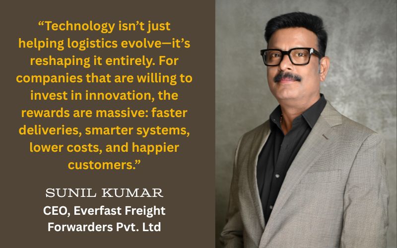 “Technology isn’t just helping logistics evolve—it’s reshaping it entirely. For companies that are willing to invest in innovation, the rewards are massive: faster deliveries, smarter systems, lower costs, and happier customers.” Sunil Kumar, CEO, Everfast Freight Forwarders Pvt. Ltd