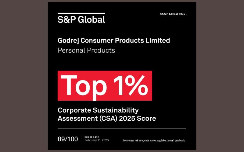 GCPL secured a score of 89 out of 100 in the Personal Products category in S&P Global’s Corporate Sustainability Assessment (CSA), which evaluated more than 9200+ companies globally, placing it among the world’s leading personal product companies on environmental, social and governance (ESG) performance. The recognition reflects the company’s consistent progress across key sustainability priorities. Within the personal products sector, the Dow Jones Best-in-Class Indices evaluates a wide range of criteria — from emission reductions to raw material sourcing, product disposal, packaging management, water management, sustainable sourcing, labour practices and many more.