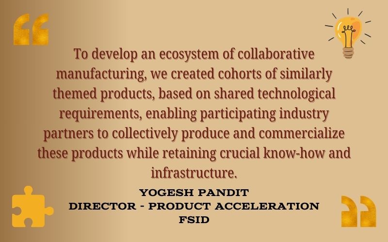 Our market survey within the capital goods sector, encompassing ten major subsectors like heavy electrical, textile machines, machine tools, printing machines, and food processing, provided a comprehensive analysis of import patterns, identifying importers, end-users, future demand, and product value. This detailed assessment revealed specific technological areas within each sub sector requiring focused development for domestic production. To develop an ecosystem of collaborative manufacturing, we created cohorts of similarly themed products, based on shared technological requirements, enabling participating industry partners to collectively produce and commercialize these products while retaining crucial know-how and infrastructure. Key performance indicators for our program include design quality, rigorously measured against market requirements, the number and value of intellectual property generated, including patents, trademarks, and design registrations, and the revenue generated by these domestically developed products.