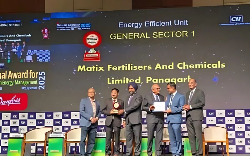 Matix Fertilisers and Chemicals Limited has been honoured with the Energy Efficient Unit Award at the 26th CII National Award for Excellence in Energy Management 2025, held in Hyderabad. The award recognizes the outstanding performance of Matix’s Panagarh, West Bengal, urea plant in FY 2024–25 and its commitment to sustainable industrial practices.