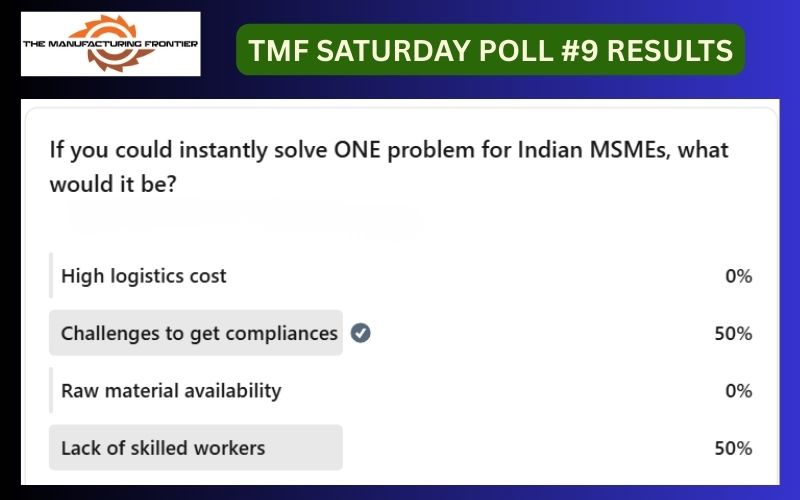 The results of the TMF Saturday Poll 9, where Challenges to get compliances and Lack of skilled workers each garnered 50% of the vote, and High logistics cost and Raw material availability received 0%, offer a profound insight into the most pressing immediate concerns of India’s Micro, Small, and Medium Enterprises (MSMEs). The decisive split between the top two issues suggests that the primary impediments to MSME growth are now less about macro-level supply chains and more about internal execution and the regulatory environment.