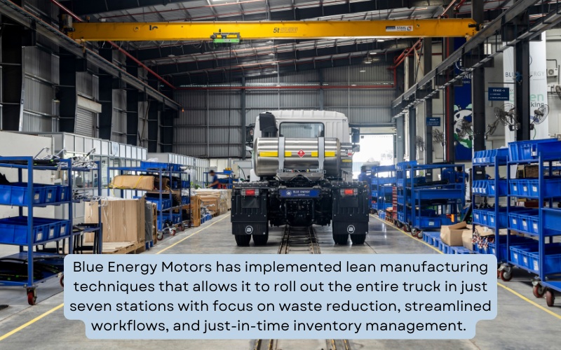 Operational excellence at the shop floor level is crucial for any manufacturing enterprise. Can you share specific examples of how Blue Energy Motors is implementing lean manufacturing principles, automation, or other process improvements to optimize production efficiency and quality in the manufacturing of both LNG and electric trucks?