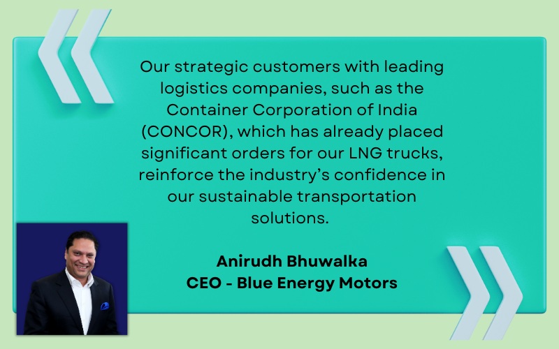 “By continuously enhancing infrastructure, working closely with stakeholders, and developing innovative solutions, we remain committed to providing a dependable and environmentally responsible alternative for India’s freight sector, driving the transition toward a cleaner, more sustainable future.” Anirudh Bhuwalka, CEO, Blue Energy Motors