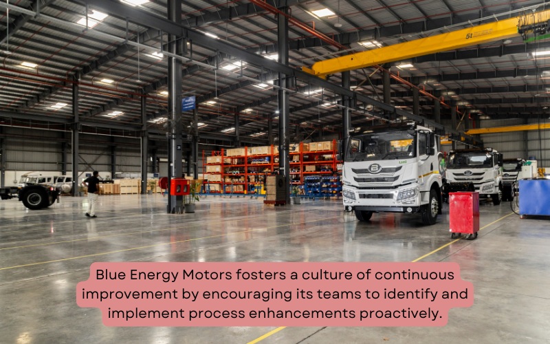At Blue Energy Motors, we recognize that operational excellence on the shop floor is fundamental to delivering high-quality, sustainable transportation solutions. Our approach integrates lean manufacturing principles, advanced automation, and continuous process improvements to enhance production efficiency and quality in the manufacturing of both LNG and electric trucks.