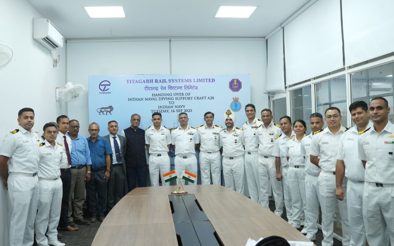 Titagarh Rail Systems Limited (TRSL), a leading Indian rolling stock and engineering solutions provider, handed over the first indigenously built Diving Support Craft (DSC), DSC A20, to the Indian Navy. This vessel is the first in a series of five DSCs being constructed by TRSL under the Ministry of Defence’s Make in India initiative. The handover ceremony took place in the presence of Commodore Aravind Chari, CSO (Tech), Southern Naval Command, who attended as the Chief Guest.