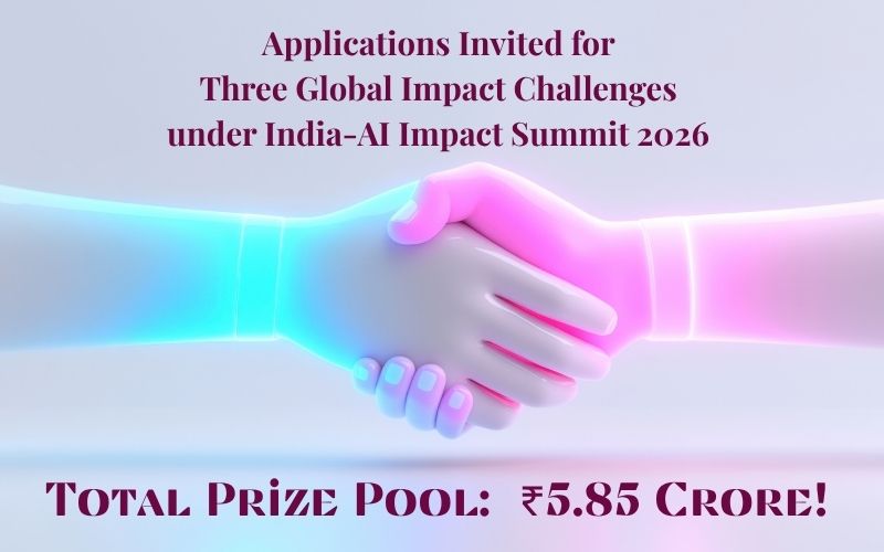 Government of India has invited applications for three Global Impact Challenges under India-AI Impact Summit 2026 with applications open till 31 October 2025. Applications for the three flagship Global Impact Challenges, announced by Minister for Electronics and Information Technology Ashwini Vaishnaw in September 2025, are now open offering total awards worth ₹5.85 Crore.